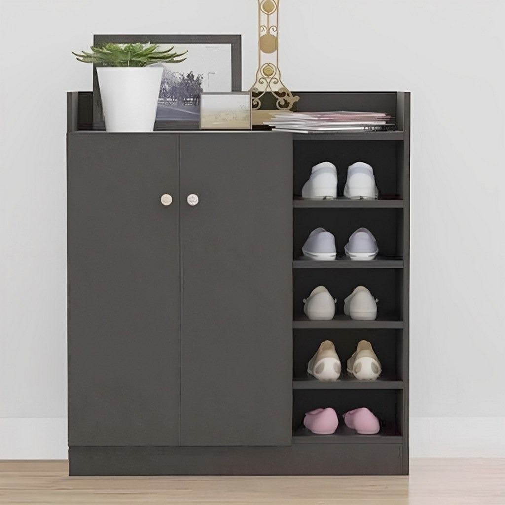 خزانة أحذية بدرفتين وأرفف لون أسود